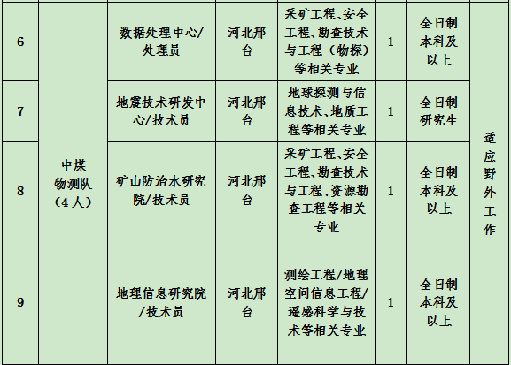 (4)能滿足用人單位的招聘崗位要求,服從單位工作安排,認(rèn)真遵守和履行單位的各項(xiàng)規(guī)章制度,身體素質(zhì)好,吃苦耐勞,能適應(yīng)野外工作。