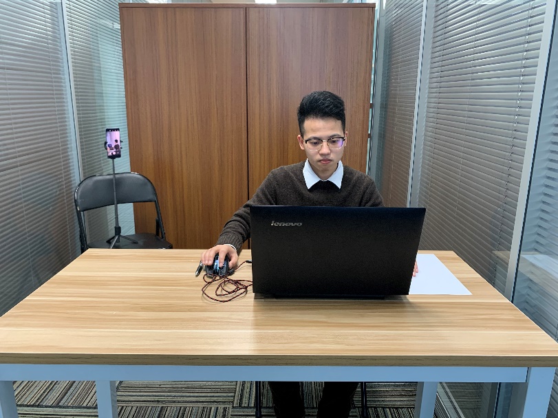 (4)考試開(kāi)始前,考生需要先登錄移動(dòng)端“智考通”,用前置攝像頭360度環(huán)繞拍攝考試環(huán)境,隨后將移動(dòng)設(shè)備固定在能夠拍攝到考生全身(含側(cè)面)、考試桌面、完整的考試設(shè)備(電腦屏幕和鍵盤(pán)等)、考生雙手動(dòng)作(考生行為)及考生周?chē)h(huán)境的位置上繼續(xù)拍攝考試全程(詳見(jiàn)說(shuō)明書(shū)中《智考通操作手冊(cè)》《智考云在線考試規(guī)范》)。請(qǐng)考生注意,視頻拍攝角度不得存在盲區(qū),不得無(wú)故中斷視頻錄制,考試視頻數(shù)據(jù)不得缺失,不得出現(xiàn)影響考務(wù)人員判斷本場(chǎng)考試有效性等情況,否則將影響成績(jī)的有效性,由考生自行承擔(dān)后果。